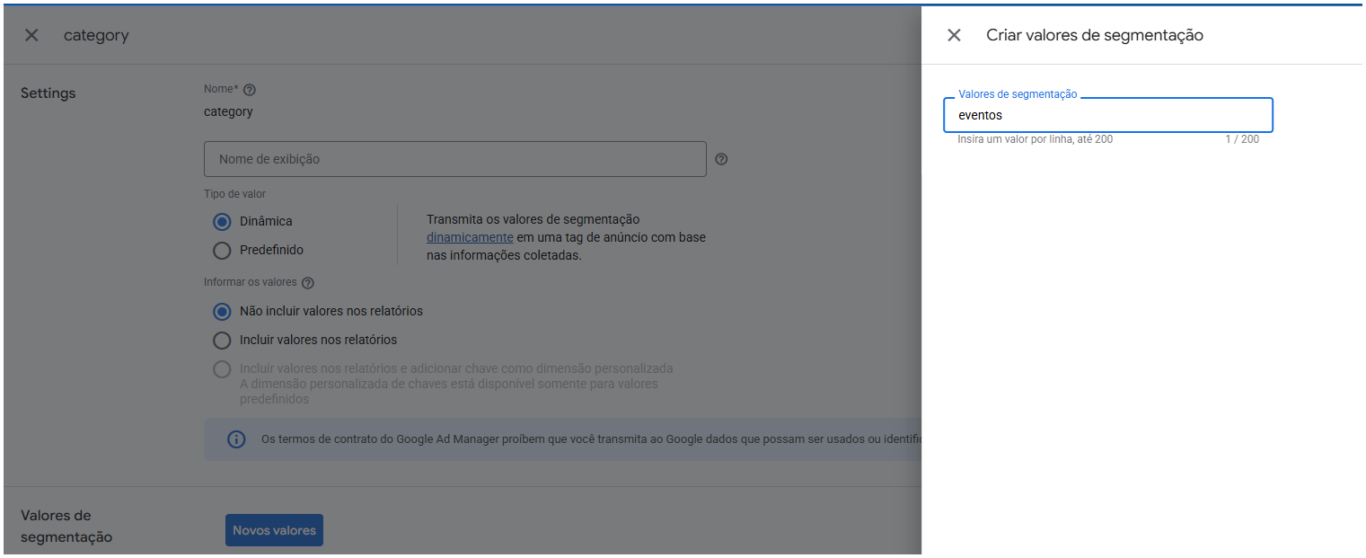 Com o slug da categoria em mãos, as próximas etapas são no Google AdManager.