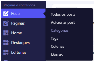 - Acesse o menu Posts > Categorias: