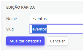 - Copie e anote o slug da categoria, sem fazer nenhuma alteração.