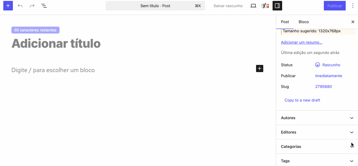 Caso a opção esteja desativada, a visibilidade do editor poderá ser controlada individualmente em cada postagem, diretamente no editor Gutenberg.