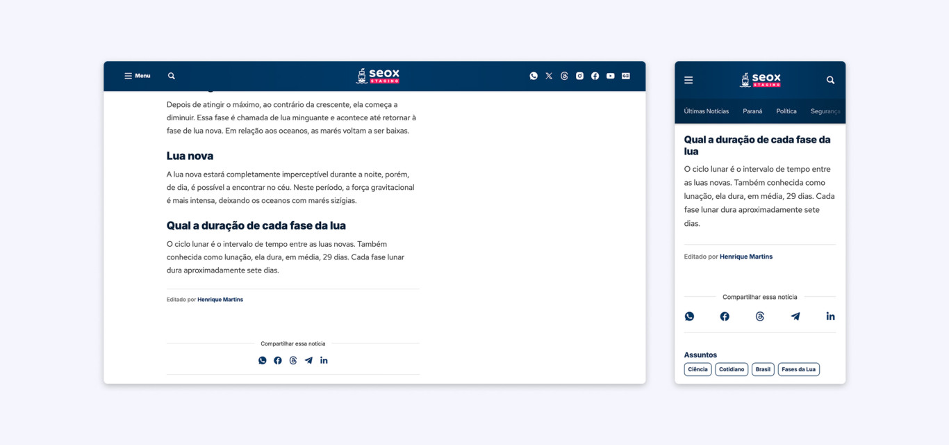 Agora é possível destacar, além dos autores da matéria, os editores responsáveis pela publicação ou revisão do conteúdo. Essa funcionalidade foi criada para valorizar o trabalho da equipe editorial, separando de forma clara quem escreveu o texto de quem participou da edição ou publicação da notícia. Em contextos de redações colaborativas, essa distinção é essencial para dar o devido crédito a todos os envolvidos no processo de produção.