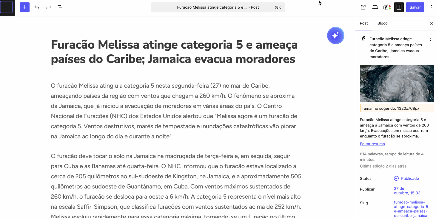 Com o objetivo de resolver uma dor histórica das redações, a adequação das notícias aos critérios de SEO do Google, integramos a inteligência artificial Gemini, desenvolvida pelo próprio Google, diretamente ao editor Gutenberg.