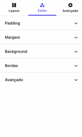 - Padding: Define a margem interna do container. É possível configurar valores distintos para desktop e mobile, garantindo maior controle sobre o espaçamento dos elementos internos.