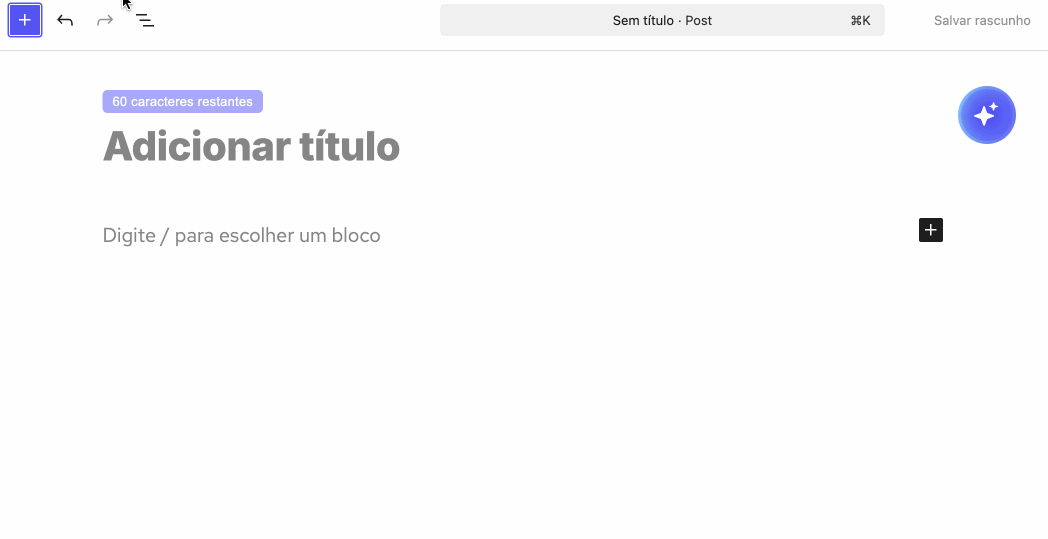 Para agilizar o processo, você também pode utilizar o atalho digitando /container diretamente dentro do conteúdo da notícia. Isso abrirá o bloco de forma rápida, sem a necessidade de navegar pelo menu lateral.