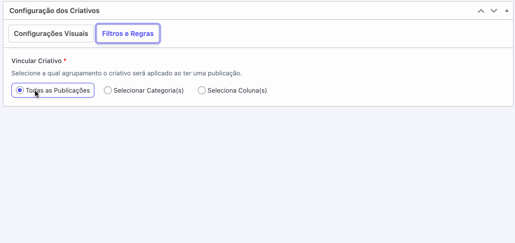 - Todas as publicações: o criativo será aplicado a todas as notícias do portal.
