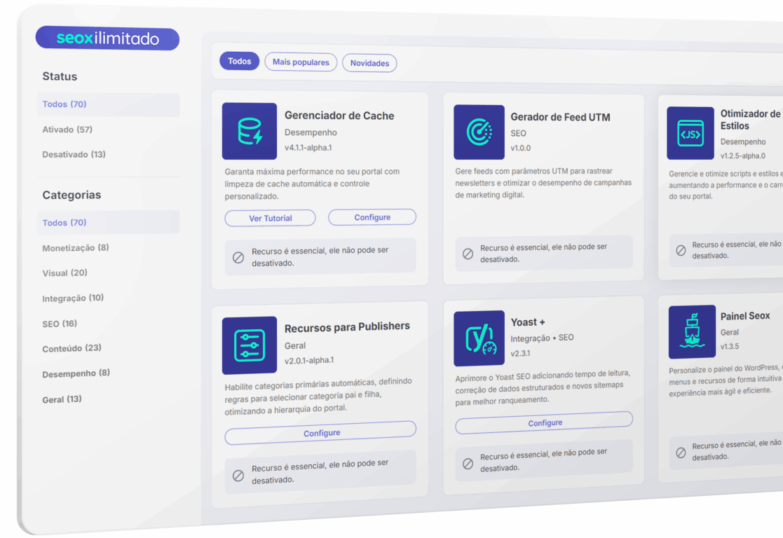 A Seox Store acaba de receber um update significativo que transforma a experiência de navegação e descoberta de recursos. A principal melhoria está na capacidade de filtragem, permitindo que os usuários localizem instantaneamente os itens mais relevantes: agora é possível filtrar especificamente os Recursos Mais Populares e as Novidades desta Atualização.
