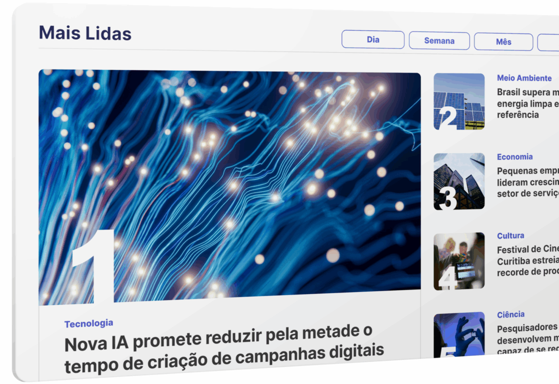 O novo bloco de Mais Lidas na home foi redesenhado para oferecer uma experiência muito mais flexível e inteligente. Agora, a exibição das notícias mais acessadas utiliza a mesma estrutura dos blocos de Mais Lidas das páginas internas, permitindo ao portal definir exatamente quais períodos de desempenho deseja destacar.